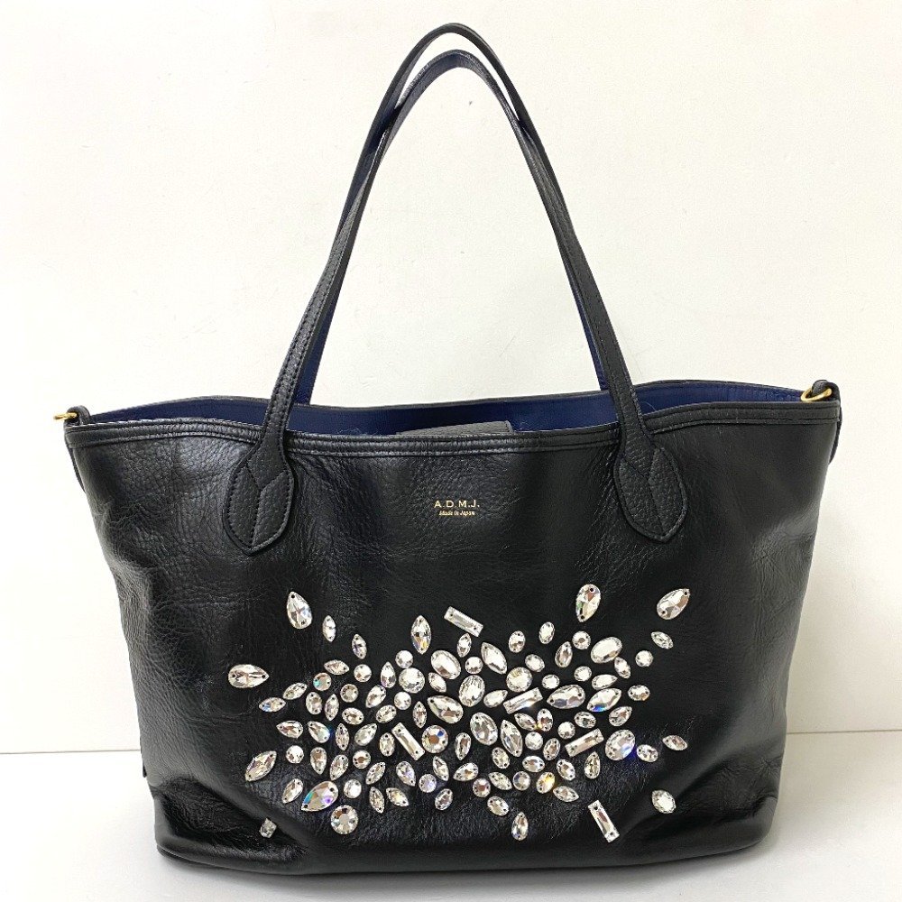 【送料無料】A.D.M.J. エーディーエムジェイ トートバッグ スワロフスキー レザー 中古【Ae451041】 エーディーエムジェイ トートバッグ A.D.M.J デイリー マジックライト ブラック