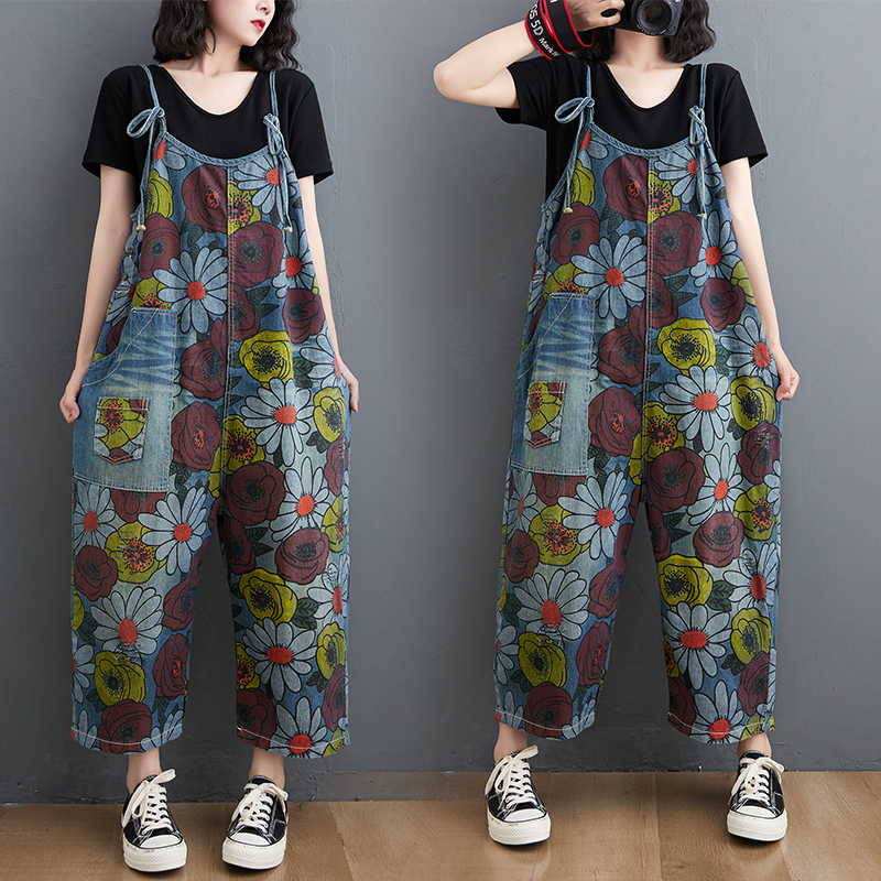 「同梱1万円送料無料」「M~XXLサイズ」夏新作*上質カジュアル*20304050代*オシャレ*ゆったり花柄*デニムつなぎ*サルエルサロペット**の検索結果